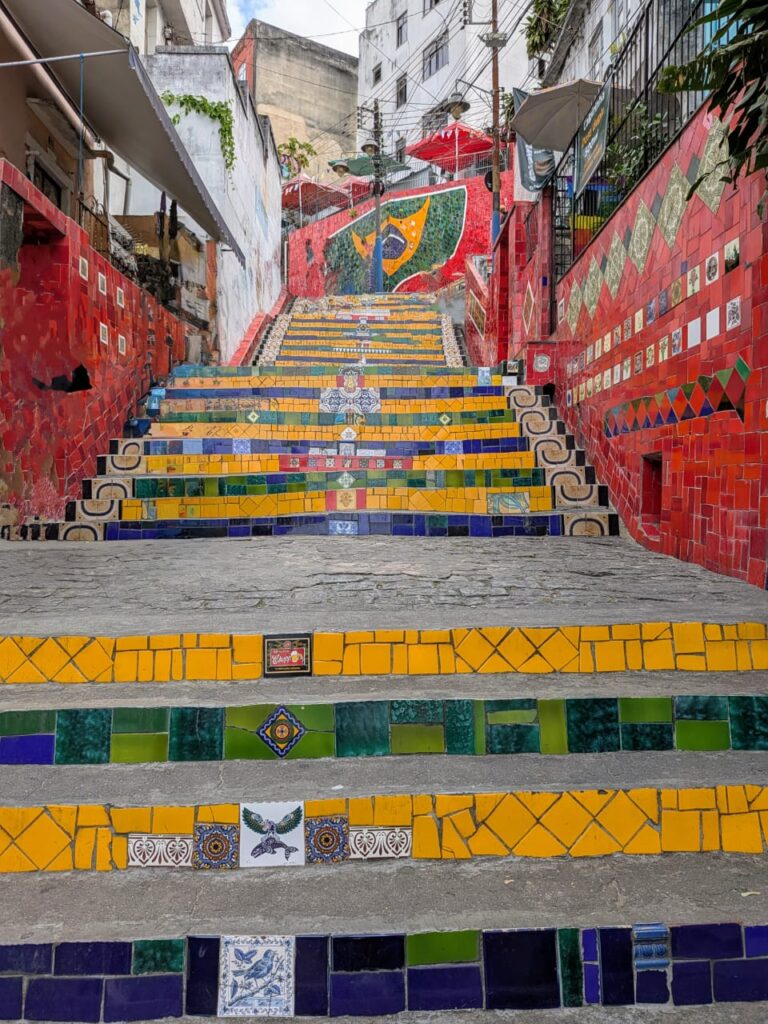 Today, the steps pulse with life: tourists hunting for tiles from their countries, musicians filming videos (U2, Snoop Dogg), and locals stepping through color and memory. This is no static monument—it’s a testament to devotion, memory, diaspora, and grief… and an unforgettable, surreal Rio moment.